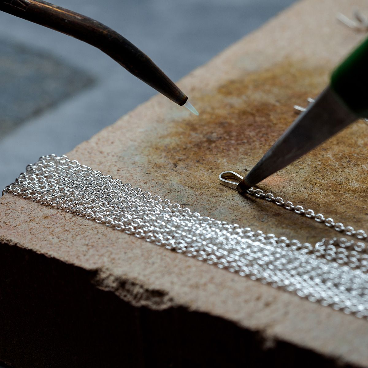 Produkt wykonany jest ze srebra próby 925. Istnieje możliwość pokrycia powierzchni złotem, rodem lub platyną – co pozwala dopasować element do koloru biżuterii i indywidualnych preferencji klienta.