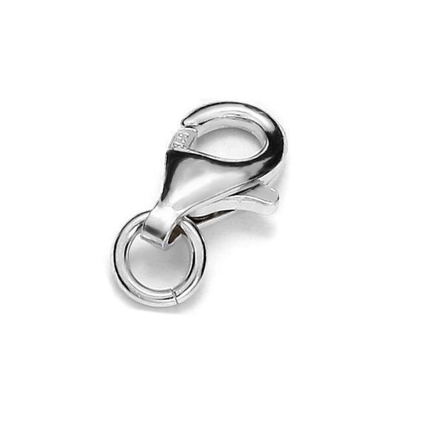 Zapięcia do biżuterii to elementy, które łączą funkcjonalność z elegancją, stanowiąc nieodłączny detal każdego projektu jubilerskiego. Prezentowany model to klasyczne zapięcie karabińczyk z praktycznym, odginanym kółeczkiem montażowym, które ułatwia szybkie i trwałe połączenie wszystkich części biżuterii. Dzięki takiemu rozwiązaniu tworzenie naszyjników, bransoletek czy łańcuszków staje się znacznie prostsze i bardziej precyzyjne.