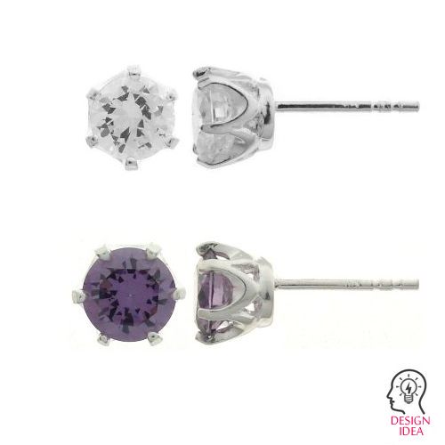 Kolczyk sztyft z koszykiem - baza do zakuwania okrągłej cyrkonii 6mm, srebro AG 925