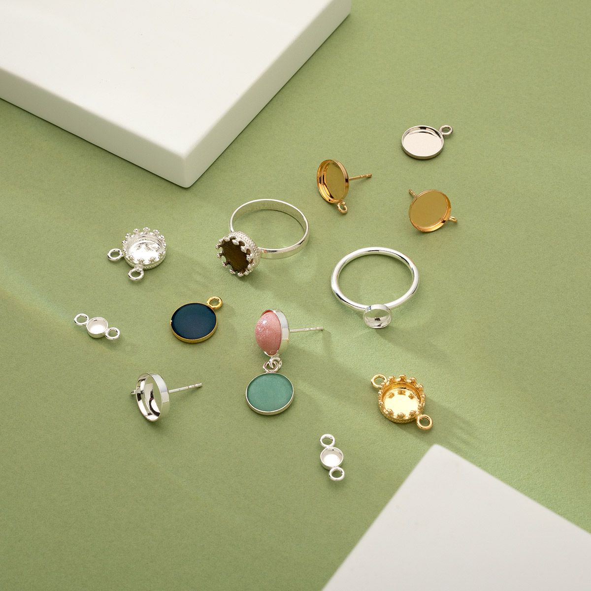 Miseczka doskonale sprawdzi się jako baza do kolczyków z żywicy epoksydowej, ale może być również wykorzystana jako baza do kaboszonów 10 mm, emalii, mas plastycznych czy drobnych elementów dekoracyjnych o płaskim spodzie. Dzięki temu jest to niezwykle wszechstronny półfabrykat do kolczyków żywica, pozwalający na realizację zarówno minimalistycznych, jak i bardziej artystycznych projektów.