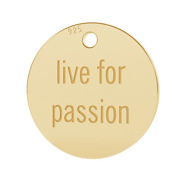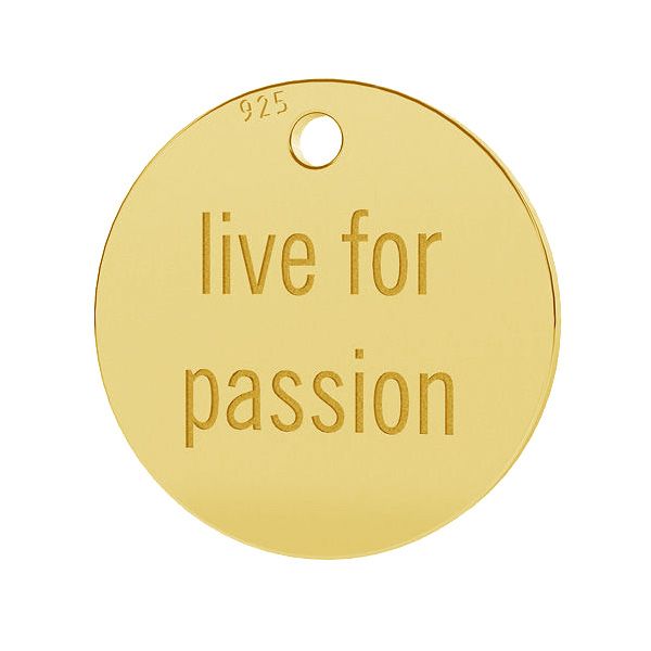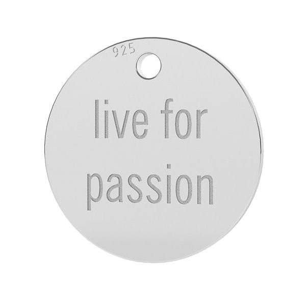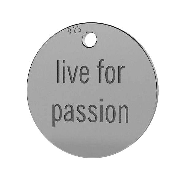 Zawieszka - blaszka okrągła - live for passion, srebro AG 925