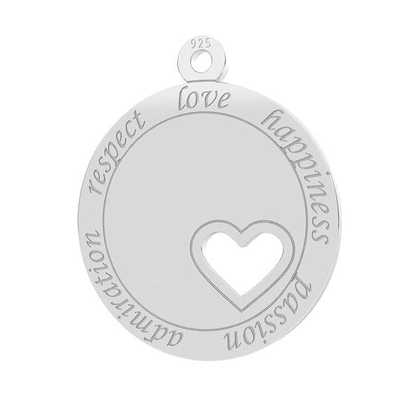 Zawieszka - blaszka okrągła z sercem i grawerem, srebro AG 925