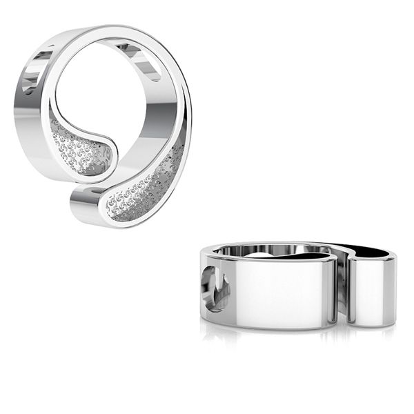 Element pokryty warstwą rodu. Produkty rodowane nie ciemnieją i nie matowieją. Są odporne na wszelkie przebarwienia. Wizualnie są ciemniejsze od wersji srebrnej i przypominają białe złoto. Grubość rodowania wynosi 0,2 μm.