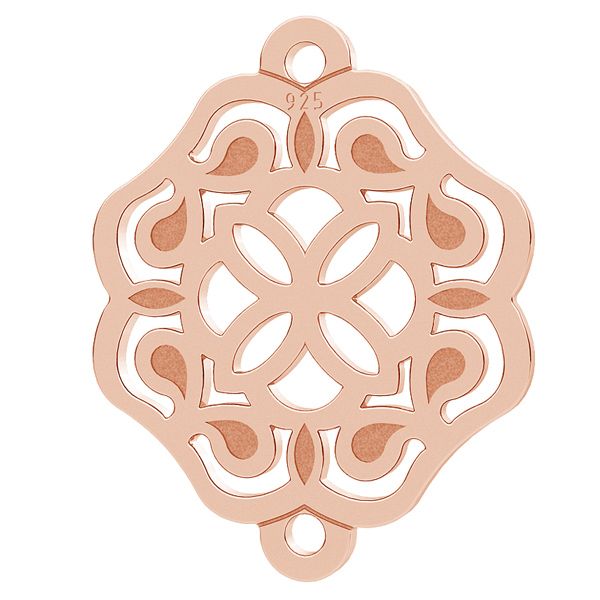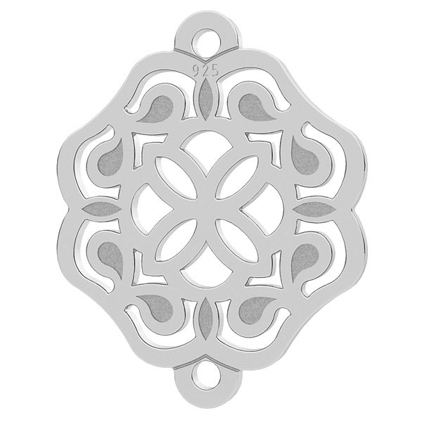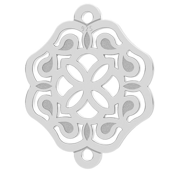 Zawieszka ozdobna rozeta wykonana ze srebra próby 925. Została wykonana metodą laserową ze srebrnej blachy o grubości 0,50 mm. Dobierając jedną z naszych baz do bransoletek lub naszyjników można z niej wykonać delikatną bizuterię.