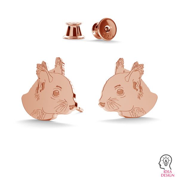 Kolczyk sztyft - wiewiórka (L+R), srebro AG 925