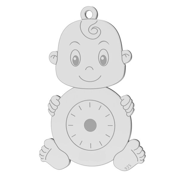 Zawieszka chłopczyk, wykonana ze srebra próby 925. Posiada miejsce na grawer imienia oraz godziny narodzin dziecka.