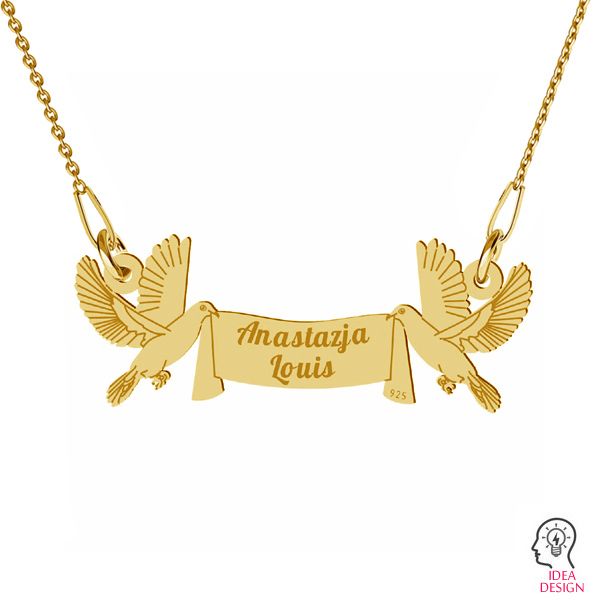 Zawieszka łącznik - wstęga z gołąbkami, srebro AG 925