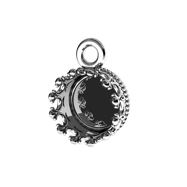 Element pokryty warstwą rodu. Produkty rodowane nie ciemnieją i nie matowieją. Są odporne na wszelkie przebarwienia. Wizualnie są ciemniejsze od wersji srebrnej i przypominają białe złoto. Grubość rodowania wynosi 0,2 μm.
