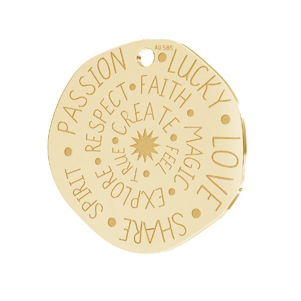 Złota zawieszka w formie talizmanu-monety wykonana ze złota AU 585 to stylowy i uniwersalny dodatek z symbolicznym przesłaniem. Idealna do projektów biżuterii inspirowanej tradycją i historią.