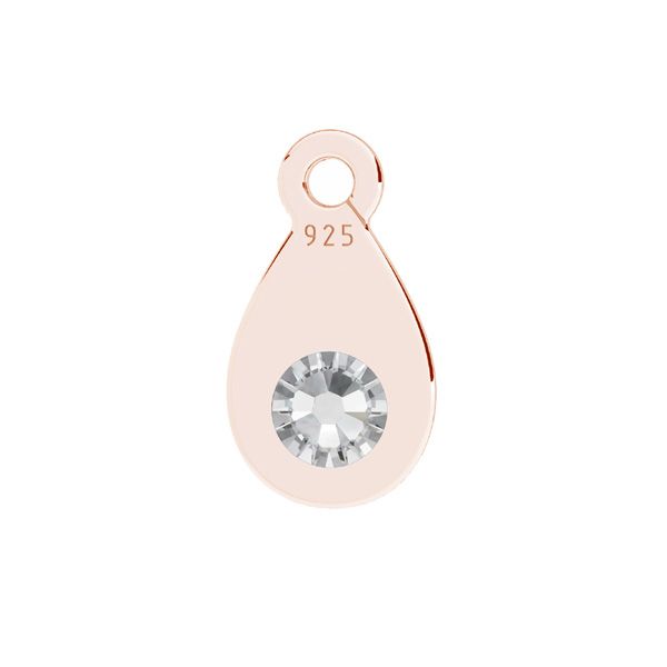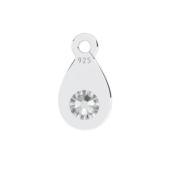 Blaszka cechowa, wykończeniowa typu łezka z odginanym kółkiem i kryształem, srebro AG 925