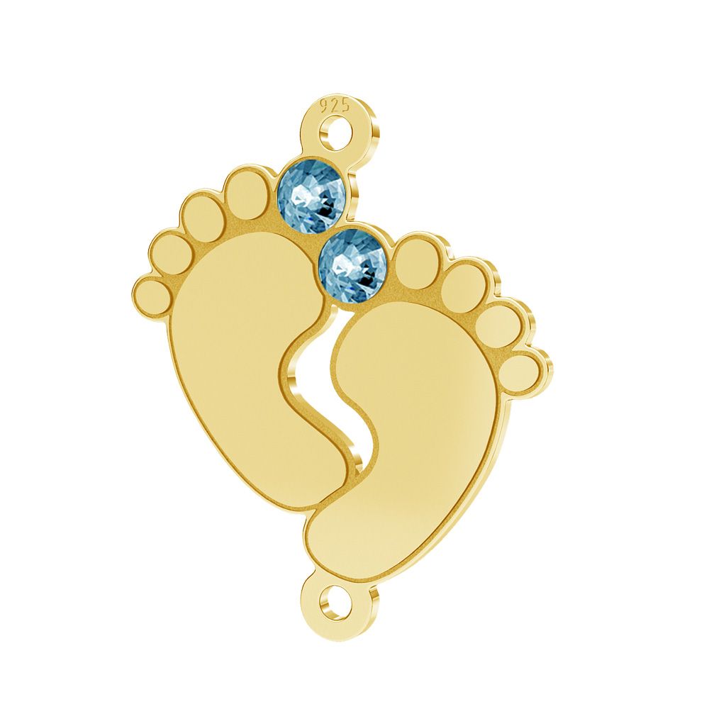 Zawieszka łącznik - stópki dziecka z niebieskimi kryształami Preciosa, srebro AG 925
