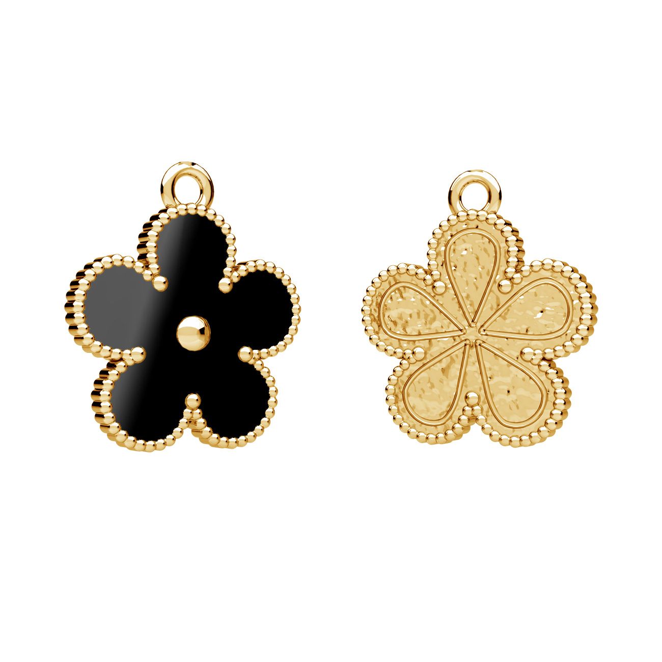 Zawieszka w kształcie kwiatka wypełniona czarną żywicą to elegancki i stylowy element biżuterii.