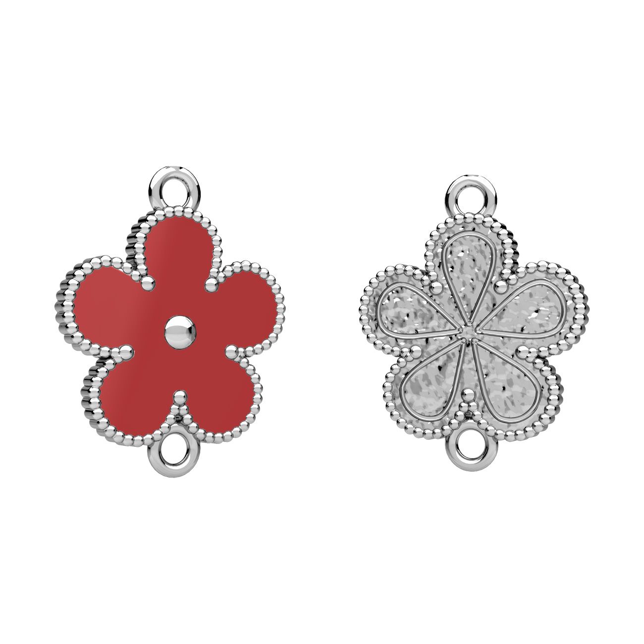 Zawieszka łącznik - kwiatek, z czerwoną żywicą, srebro AG 925