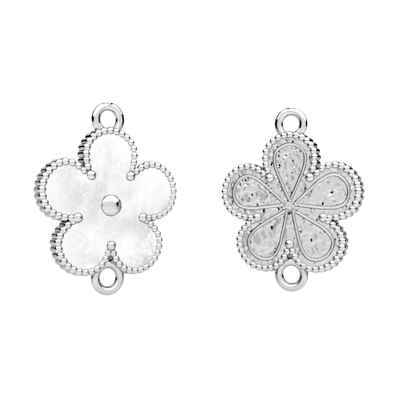 Zawieszka łącznik - kwiatek, z białą żywicą, srebro AG 925
