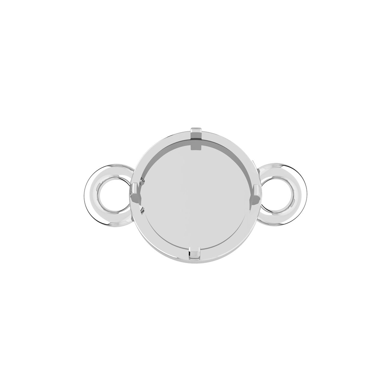 Zawieszka łącznik wykonana ze srebra próby 925, przeznaczona do oprawy okrągłych kamieni naturalnych o średnicy 6 mm. Idealna do tworzenia naszyjników, bransoletek lub kolczyków. Funkcjonalna forma z oczkami po bokach ułatwia montaż i daje wiele możliwości projektowych.