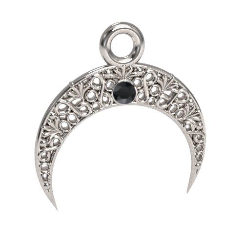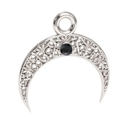 Zawieszka ażurowa - księżyc z kamieniem Jet, srebro AG 925
