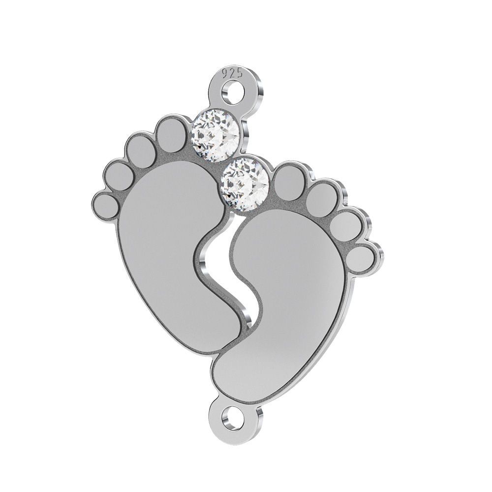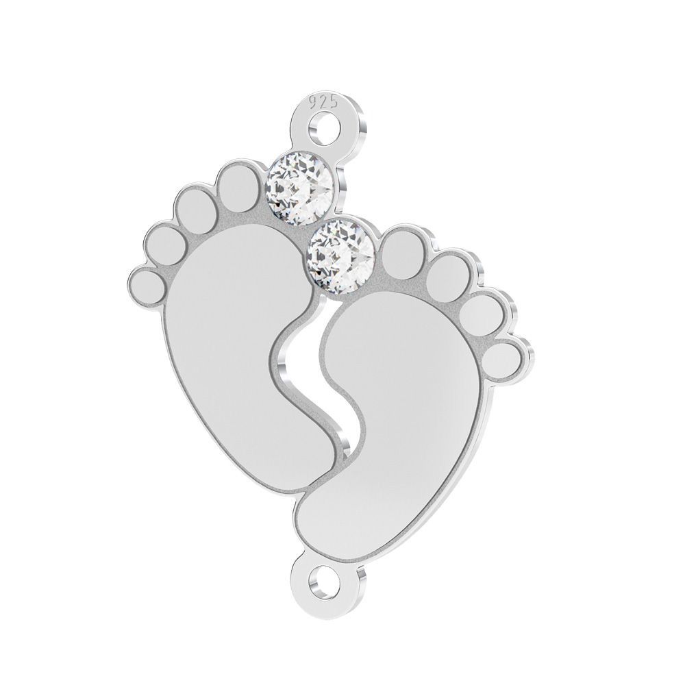 Zawieszka łącznik - stópki dziecka z białymi kryształami Preciosa, srebro AG 925