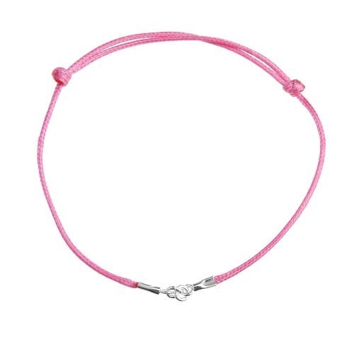 Bransoleta sznurkowa woskowana - regulowana - różowa, srebro AG 925