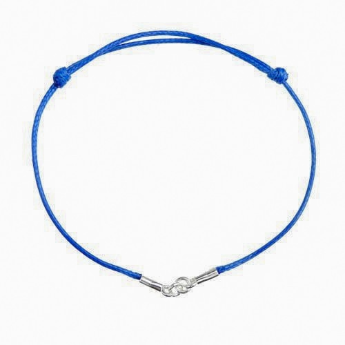 Bransoleta sznurkowa woskowana - regulowana - niebieska, srebro AG 925