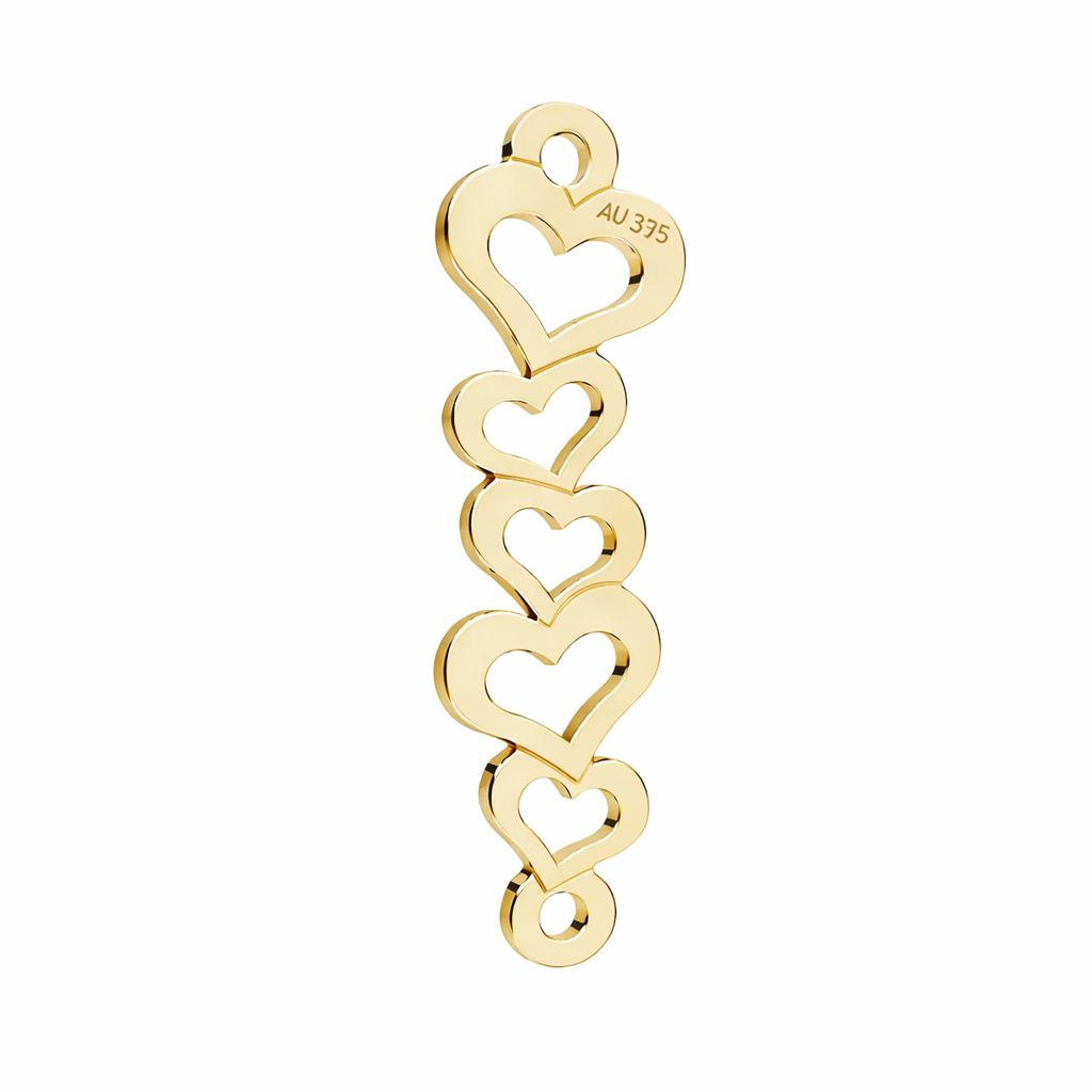 Ażurowy łącznik z motywem serduszek wykonany ze złota AU 375 to lekki i precyzyjny półfabrykat jubilerski. Powtarzalna forma serc sprawdzi się w projektach biżuterii o symbolicznym charakterze, przeznaczonych do kolekcji nowoczesnych i klasycznych.